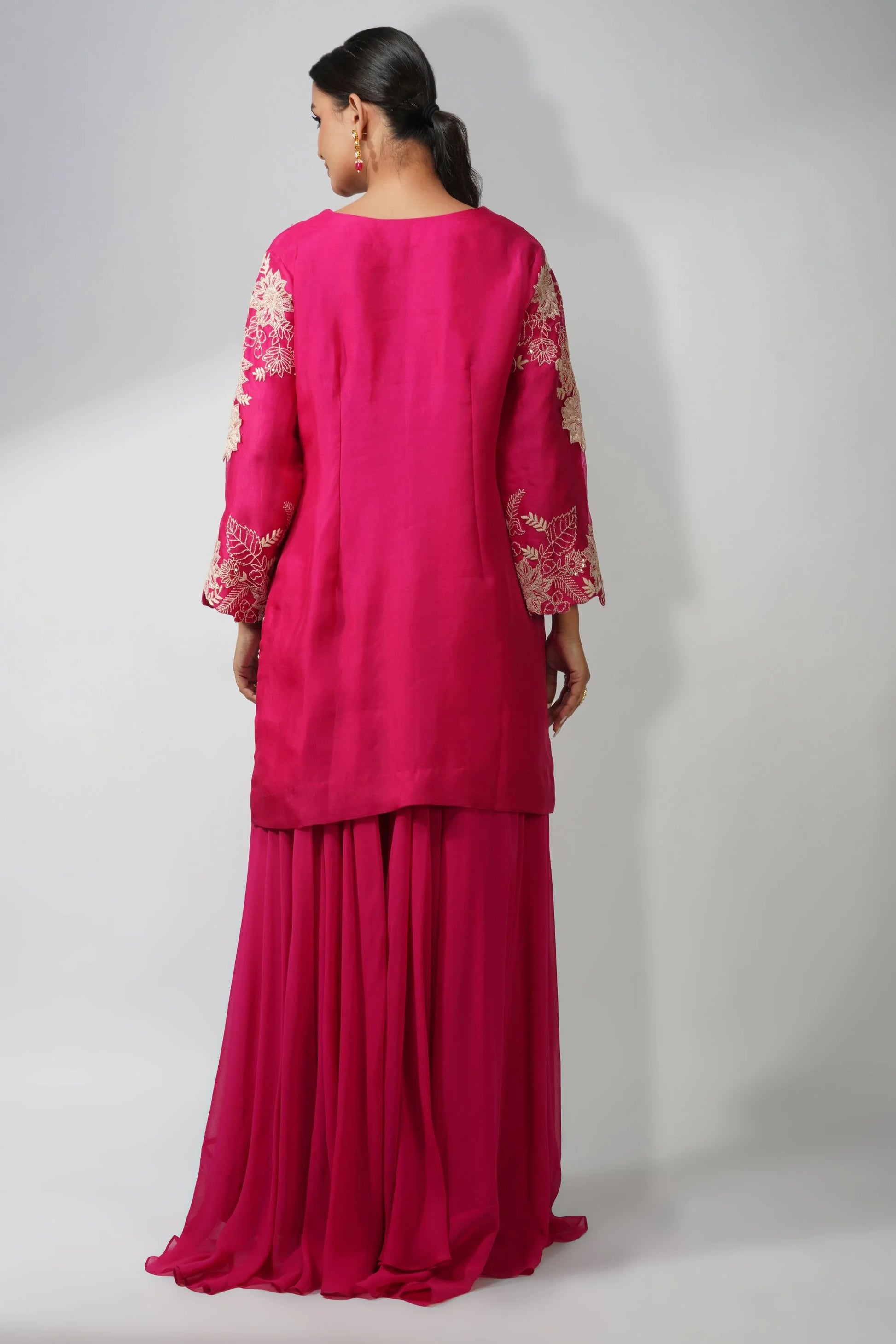 Pure Organza Fuschia Kurta Set Featuring 3d Handwork