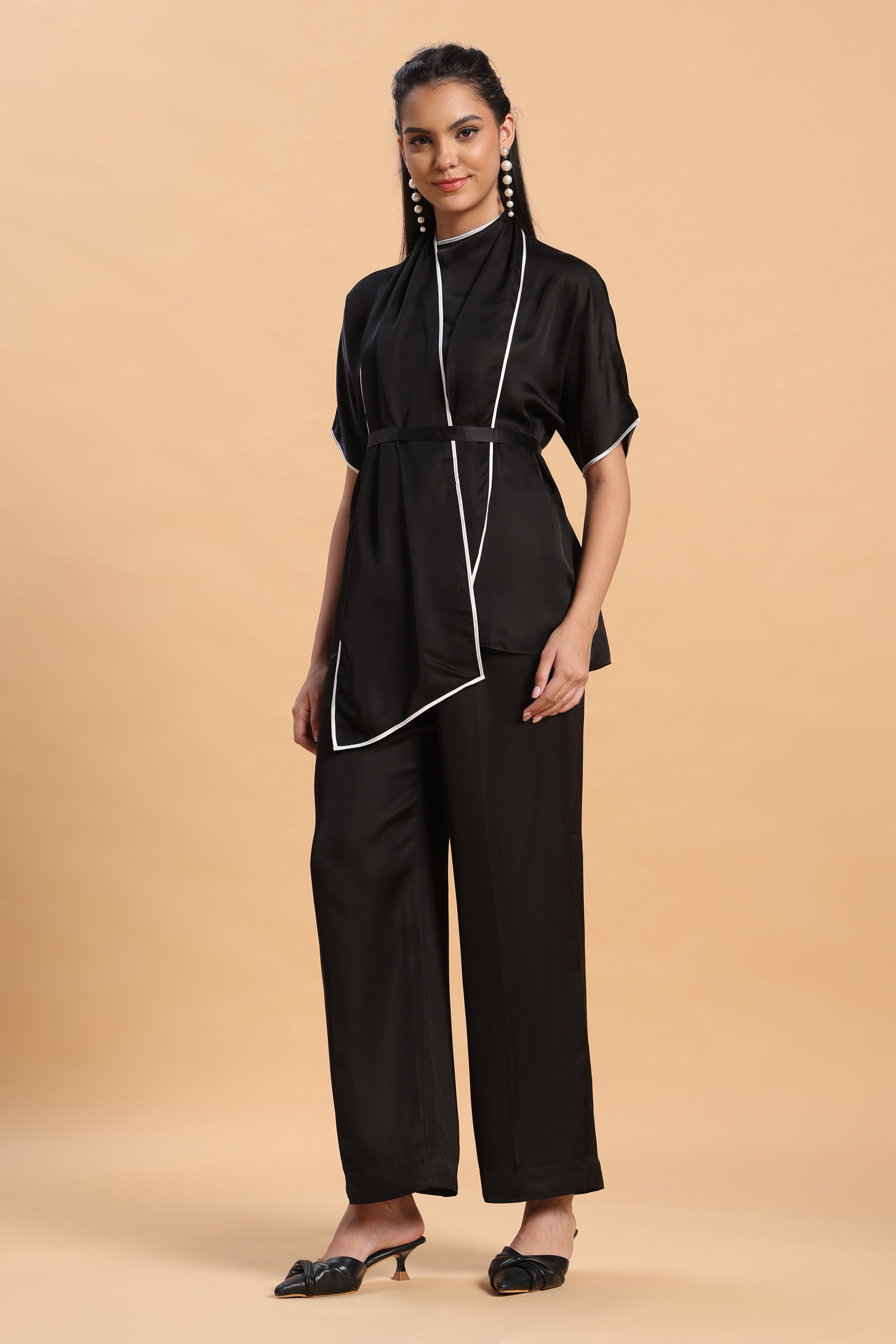 Black satin co ord set